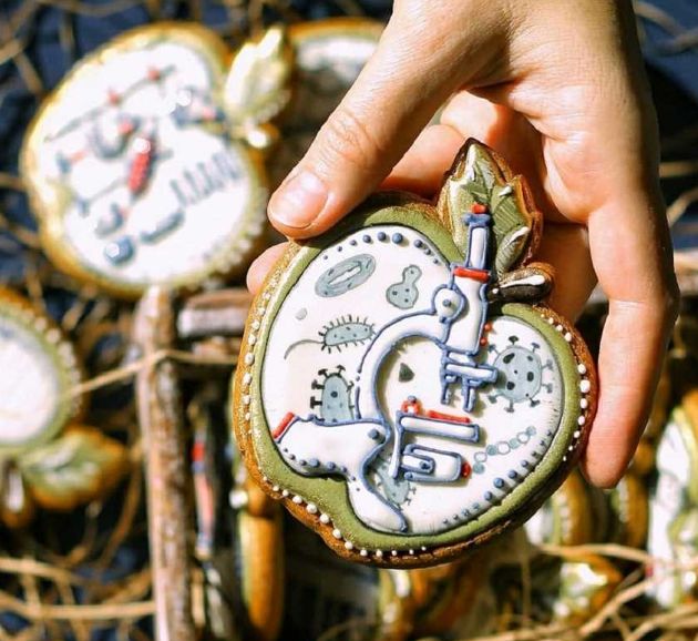 На этом этапе предстоит тонкая работа — нанесение на пряники росписи, посвящённой разным школьным предметам (математике, физкультуре, географии, литературе, химии и физике, биологии, английскому языку, истории, музыке).